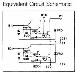 2DI150Z-100 absolute maximum ratings: (1)VCBO:1000V; (2)VCEO:1000V; (3)VEBO:10V; (4)IC:150A; (5)ICP:300A; (6)-IC:150A; (7)IB:4A; (8)IBP:8A; (9)PC:one transistor:1000W, two transistors:2000W; (10)Tj:+150℃; (11)Tstg:-40℃ to +125℃; (12)m:470g; (13)Viso:2500V.