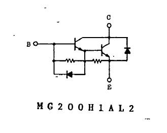 MG200H1AL2 electrical charactristics: (1)collector cut-off current: 2.0 mA max at VCB1=600V, IE=0; (2)emitter cut-off current: 400 mA at VEB1=6V, IC=0; (3)collector-emitter sustaining voltage: 550 V min at IC=0.5A, L=40mH; (4)DC current gain: 80 at VCE=5V, IC=200A; (5)collector-emitter saturation voltage: 2.0 V at IC=200A, IB1=6A; (6)base-emitter saturation voltage: 2.7 V at IC=200A, IB1=6A; (7)emitter-collector voltage: 1.5 V at IE=200 A, IB1=0.