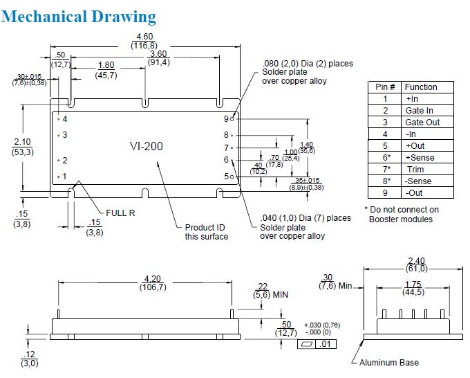 VI-26L-CU features: (1)Up to 50W/Cubic Inch; (2)UL, CSA, TüV, VDE, BABT, AUSTEL; (3)Up to 90% Efficiency; (4)Size: 116,8 x 61,0 x 12,7; (5)Remote Sense and Current Limit; (6)OVP, Thermal Shutdown; (7)Logic Disable; (8)Wide Range Output Adjust; (9)Compatible Power Booster Modules; (10)ZCS Power Architecture; (11)Low Noise FM Control; (12)CE Marked.